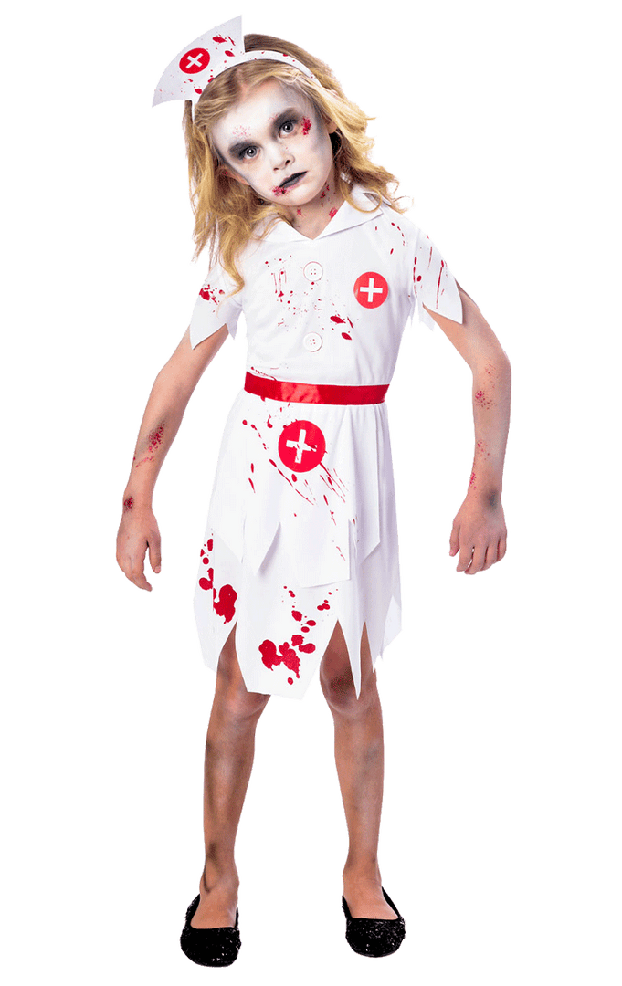 Grab this Kids Zombie Nurse Costume with your rotting, mouldy hands this Halloween to ensure your little one looks like the most gruesome kid on the block!