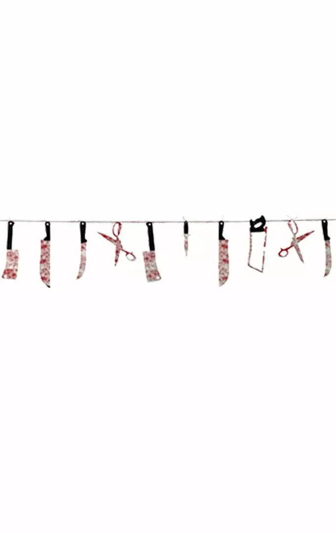 Add a bit of horror to your house party this Halloween with our blood splattered bunting featuring knives, scissors and daggers.