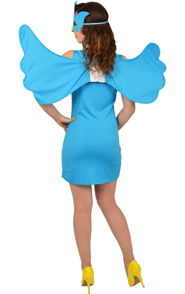 The Social Media Queen Morph Costume includes a short tank dress is the Twitter brand shade, with the hashtag ‘follow me.’