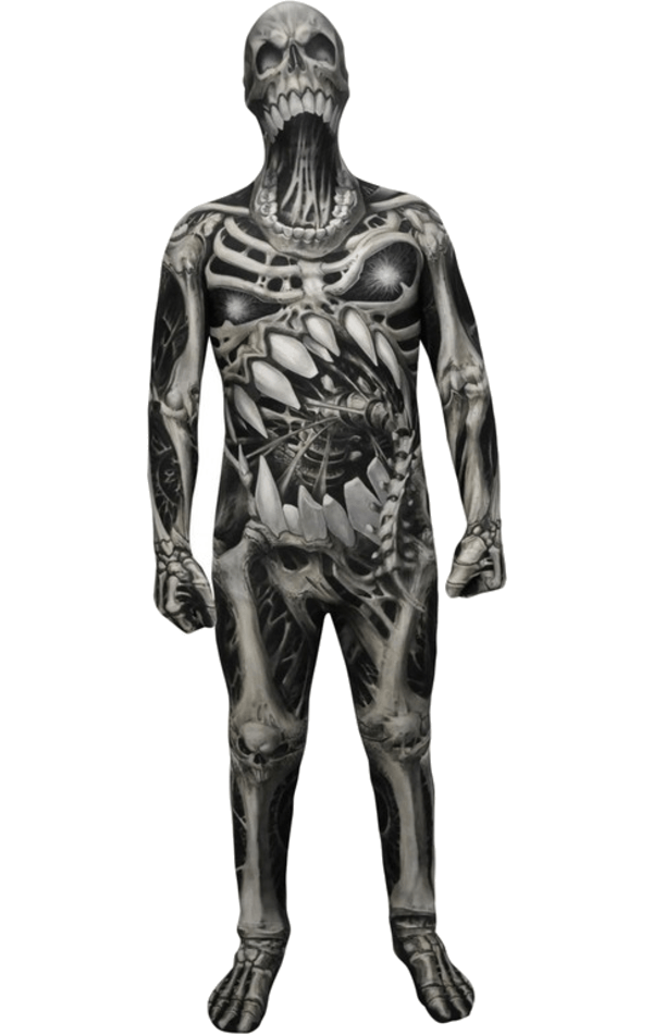 Scare the living daylights out of everyone you meet this Halloween in our Kids Skull and Bones Morphsuit. A terrifying look that is extremely detailed and dark- just the thing for your little scarers! Morphsuits are the top of the range when regarding skin suits, they are breathable, washable, easy to wear and you can even drink water through them.