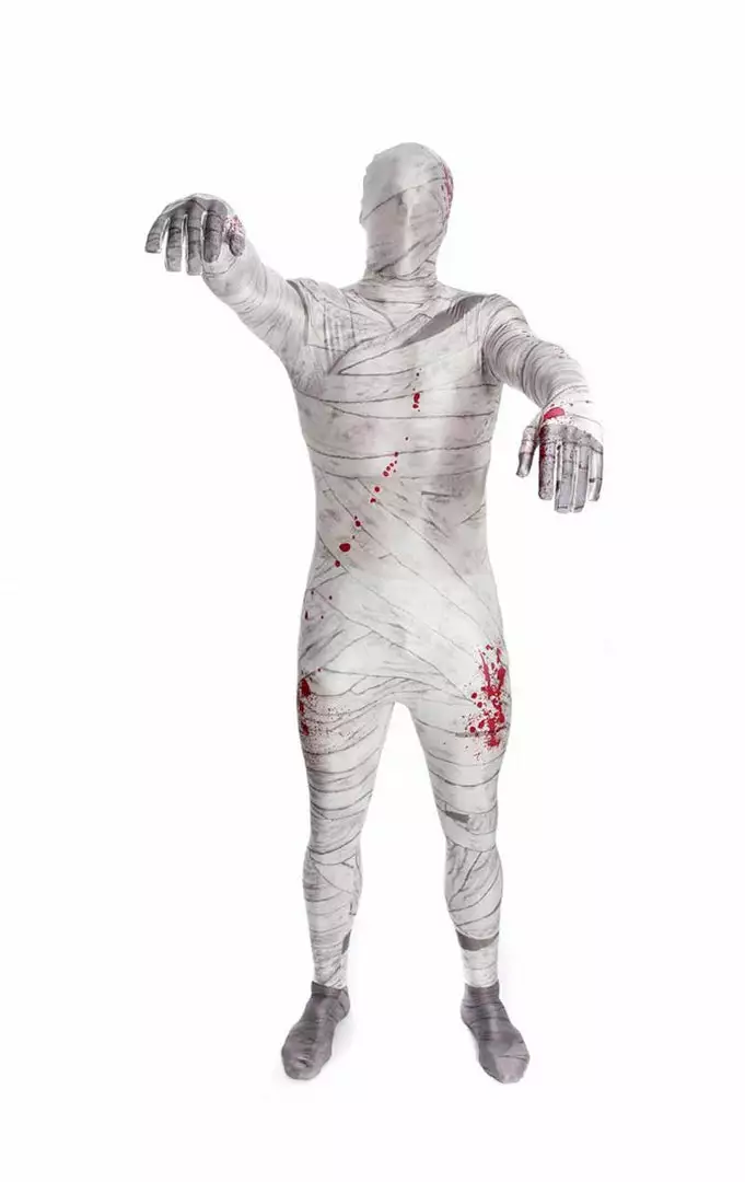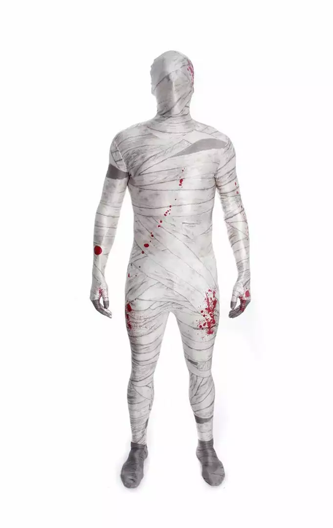 Want a super simple outfit to wear this Halloween? Don’t fancy messing about with mummifying yourself and causing all kinds of bandage bumps and bruises? Look creepily undead in the Mens Mummy Morphsuit Costume and start shaking up the party dead…