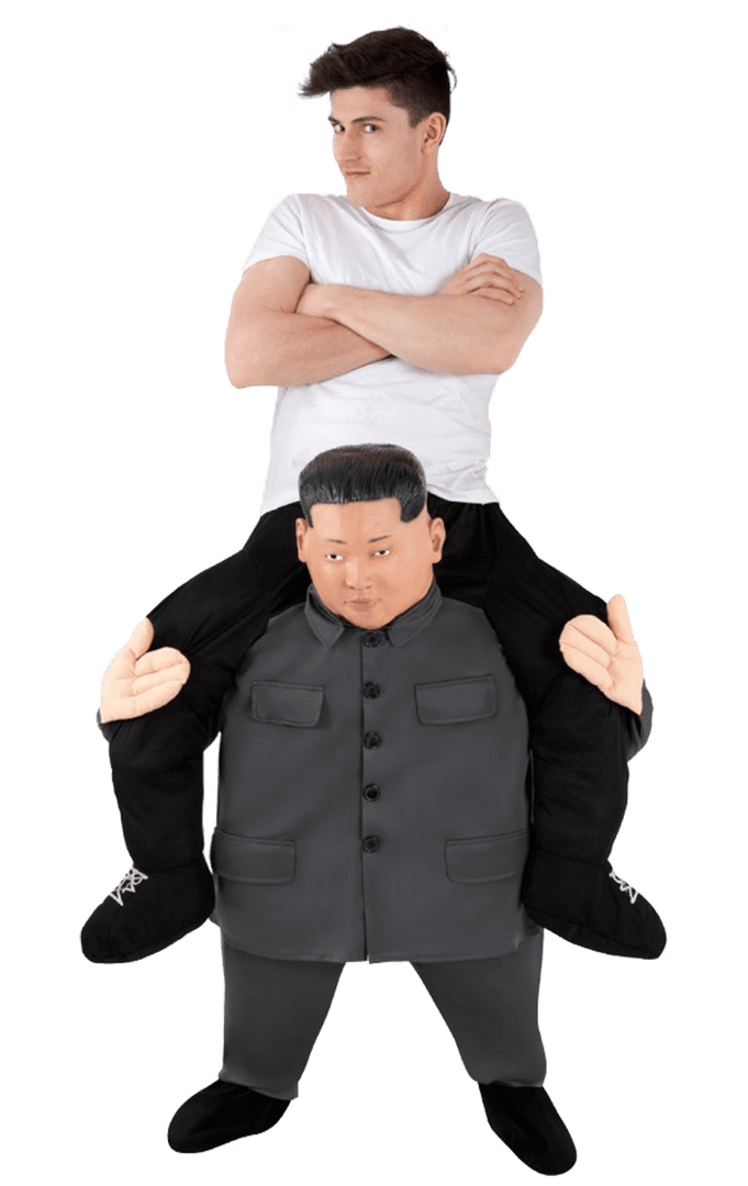 He doesn’t go to the toilet, he created the hamburger and he likes to hold the American President’s hand, but now the leader of North Korea has a new talent – he gives excellent piggybacks! Be the best dressed at the fancy dress party in the hilarious Kim Jong-un Piggyback Costume, and get all of your friends laughing. Also perfect for festivals, bad taste parties and stag do’s, this Kim Jong-un fancy dress costume will definitely get heads turning! Simply stuff the costume legs and jump in, and it’ll look like he’s carrying you on his back.