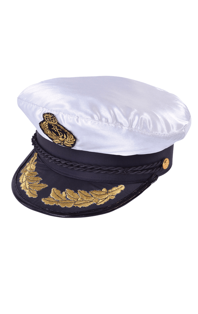 How do we know you’re the captain without the right outfit and symbols? Well, you need a Captains Cap. This is a peaked sailor’s cap with anchor badge gold leaf design.