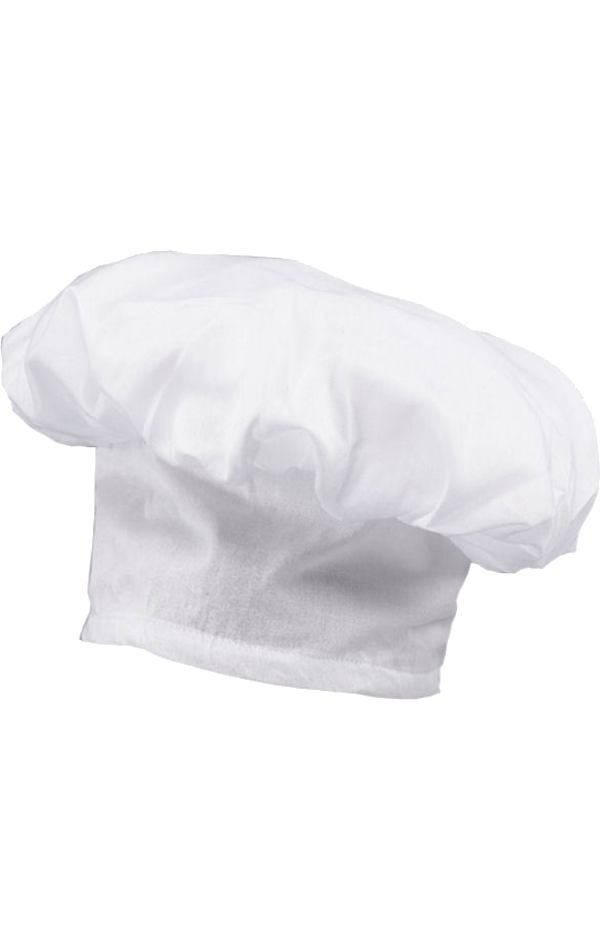 Our white chef hat has a wide hat band and a big puffed section on top. This is a one-size item designed to fit most adults. Not intended for use in play by children under 14 years of age.