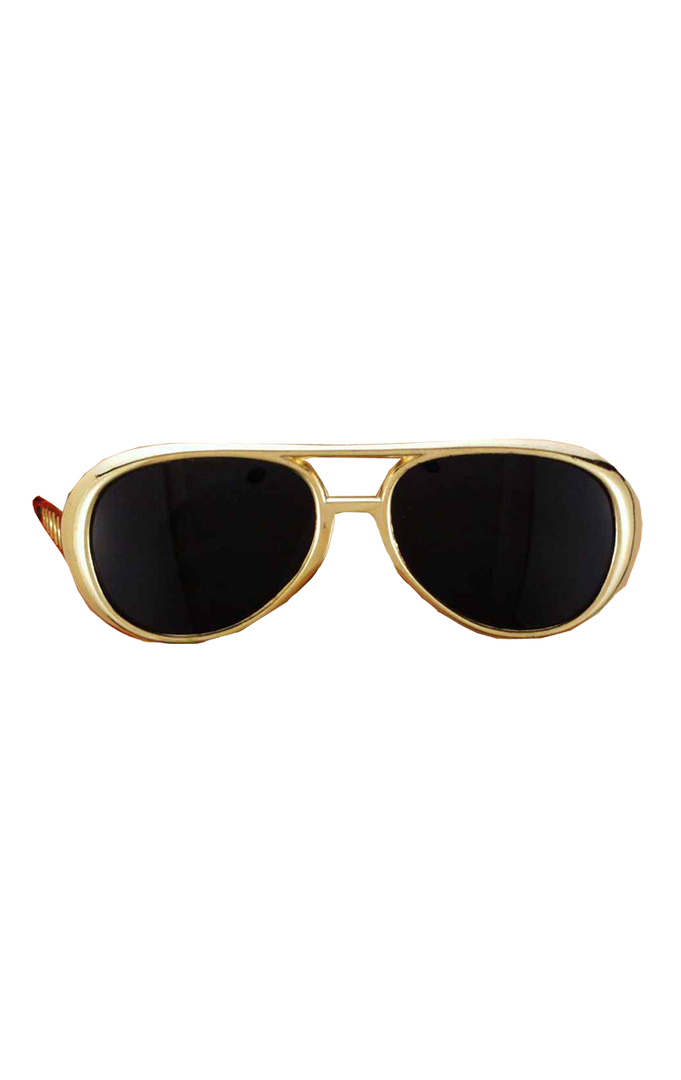 Want to put on your blue suede shoes and head for viva Las Vegas in your best flamboyant Elvis jumpsuit? Got that quiff coiffed and that lip snarled? All you need now are the Elvis Shades in Gold to complete The Kings notorious look!