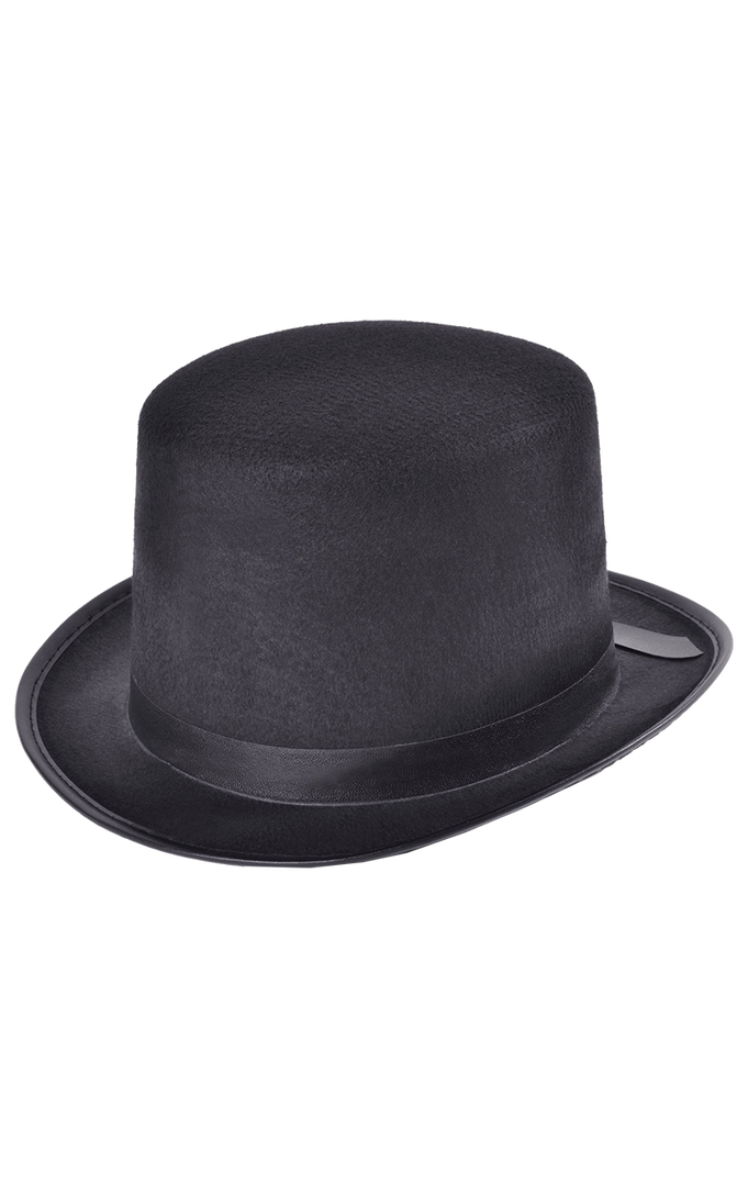 Black top hat made of felt-like material featuring a black hatband. The perfect hat for the perfect gentleman – get practicing your best ”pip pip, cheerio! Very spiffing” style of words, or if you feel like playing the Childcatcher from Chitty Chitty Bang Bang, get your best nose-sniffing out, because there may be children around at this party. Why not play the role of the P.T Barnum from the Greatest Showman? No circus ringmaster is complete without a grand old Top Hat!