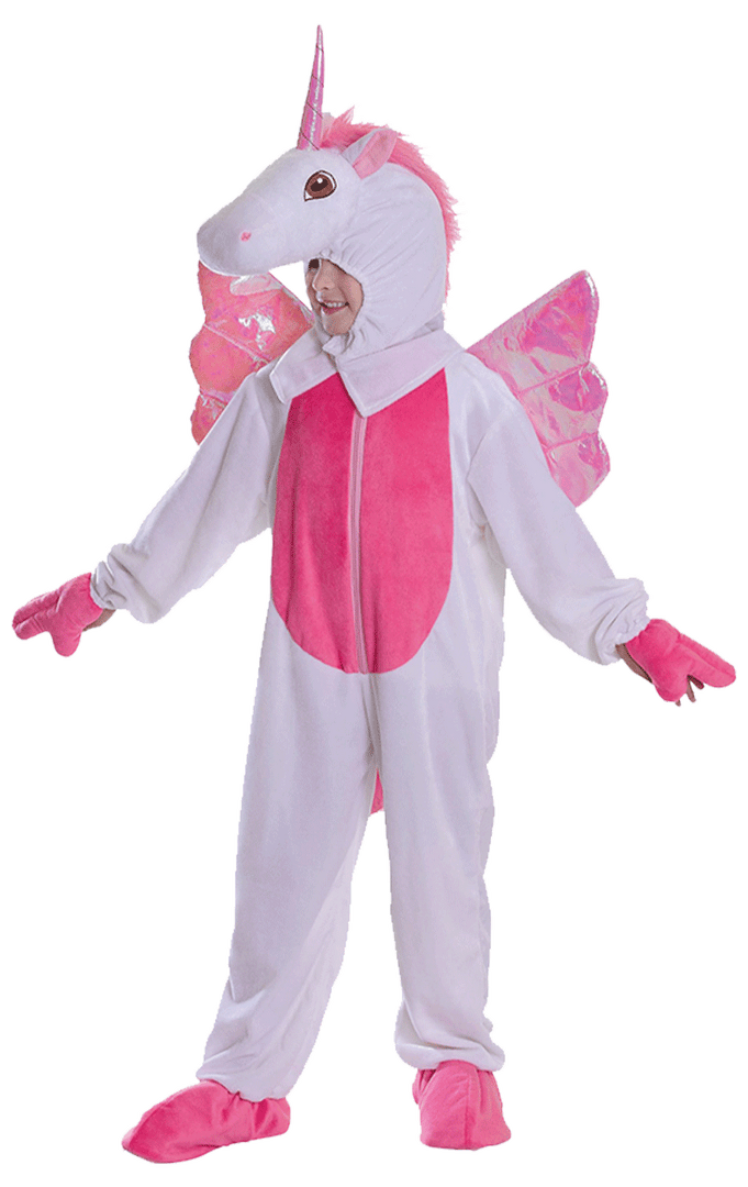 It’s everyone’s favourite mythical create, the unicorn! Your little one will look fabulous as they trot around dressed in their new Kids Unicorn Costume. This pink and white jumpsuit features a zip up jumpsuit with detachable headpiece – with it’s iconic horn!