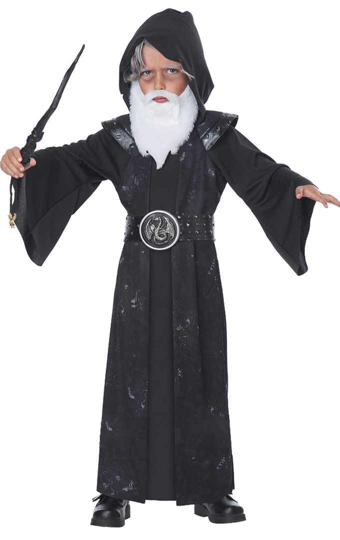 Shazam…expelliarmus…abracadabra! Whatever the magic word, the Kids Little Wizard Costume will help your child transform quickly so they can get out trick-or-treating this Halloween or rocking up to school this World Book Day. Let them cast a spell in this kids wizard costume robe with long dropped sleeves and matching white beard. This dark wizard costume is perfect for a twisted fairytale party theme, and give them a magical presence. Pair this outfit with a magic wand and send them packing their spellbooks and off to party and play!