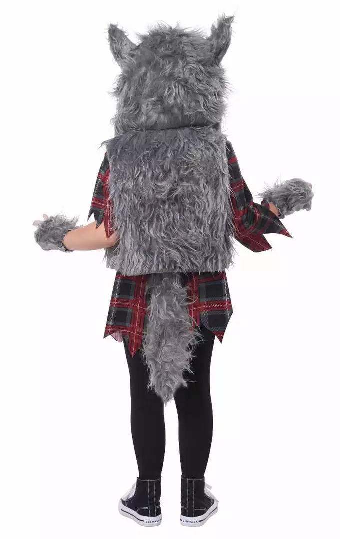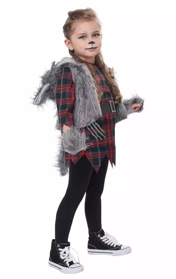 The Kids Wee-Wolf Costume includes a checked-print lumberjack tunic, high quality faux fur hood/headpiece, faux fur ‘glovettes’ and a belt with attached fluffy tail. Give your little girl a howling Halloween makeover today!