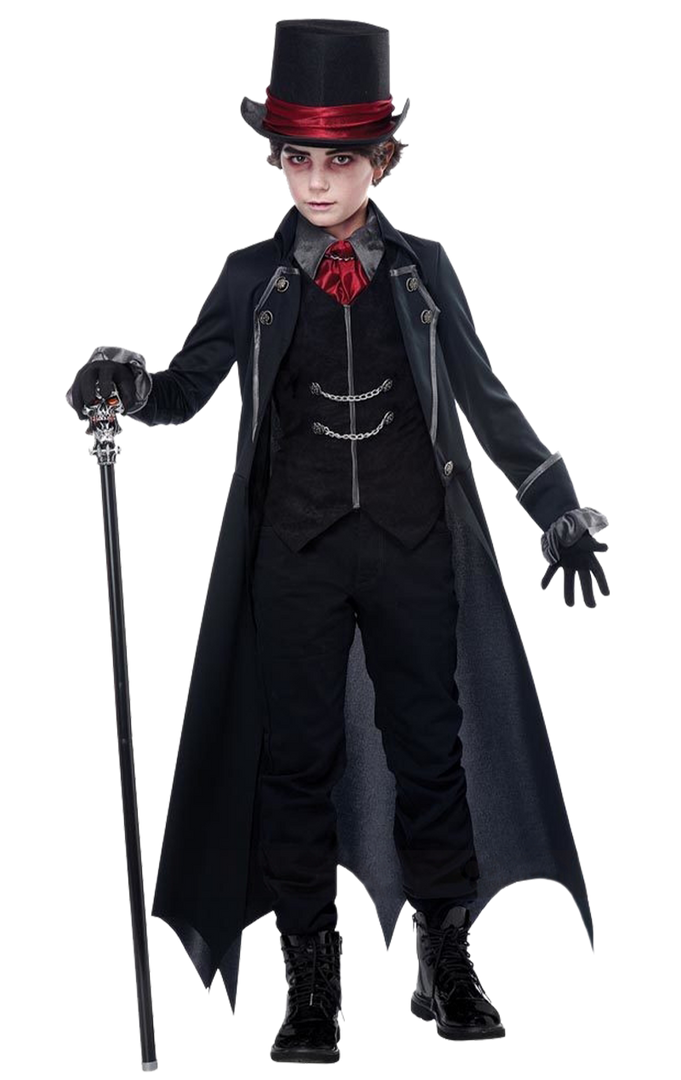 Your little one will look like Lord of the Manor in the Kids Vintage Vampire Costume. This look is gothic and very reminiscent of classic vampire tales and takes that have passed. This boys vampire costume features a traditional long black coat, a smart vest, a cravat and a matching top hat, so your little one will look irresistibly suave this Halloween. He’ll have a thirst for something more than sweets when he’s out trick-or-treating. So tell the neighbours to beware, because this vampire bites!