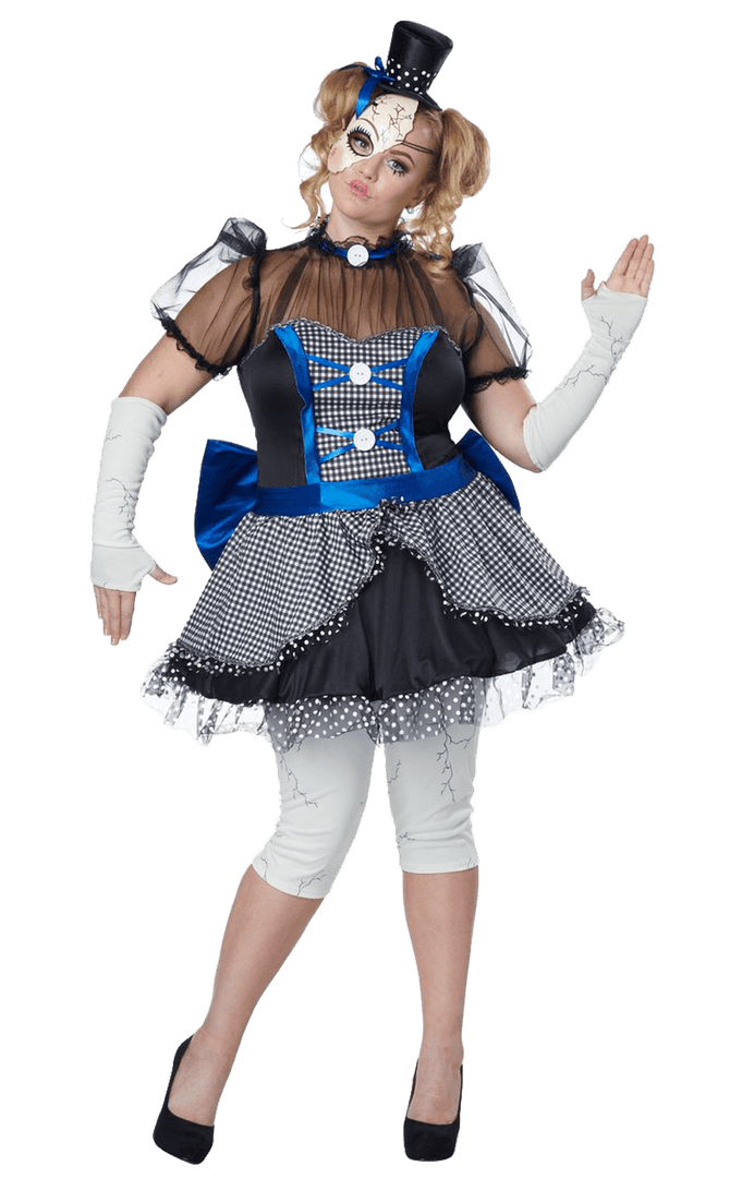 Want to terrify the party goers? Want to haunt them and remind them of their childhood? This creepy Twisted Doll in plus size is more than enough to terrorize their memories! Includes dress, bow, gloves, leggings, facepiece and hat. Perfect for Halloween parties.