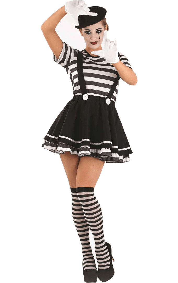 Want a cute and playful outfit for that fancy dress party? Want to be all about the actions and not the words? Be the quietest person at the party, with the loudest moves with the Mime Artiste Costume!