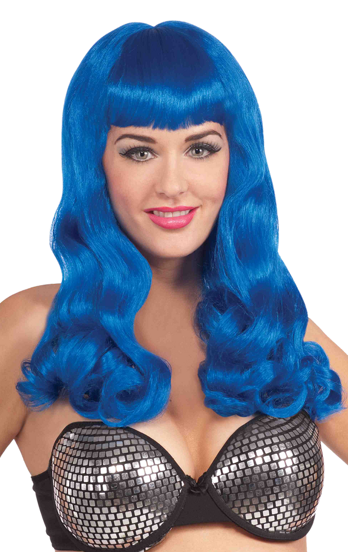 The California Girl Wig has long dark blue faux hair with a gentle wave and a fringe. Please note make up and other accessories are available separately.