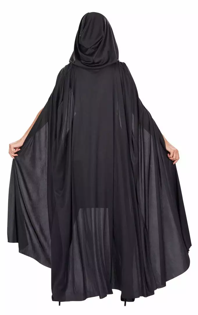 This Unisex Black Hooded Cape is a staple for any dressing up box. Conceal your identify with the long, black hooded robe and transform into a variety of characters. Whether you want to be a vampire, witch or warlock for Halloween, or would like to become a cultist, Game of Thrones villain or sorcerer, the opportunities for a black hooded cape are endless!