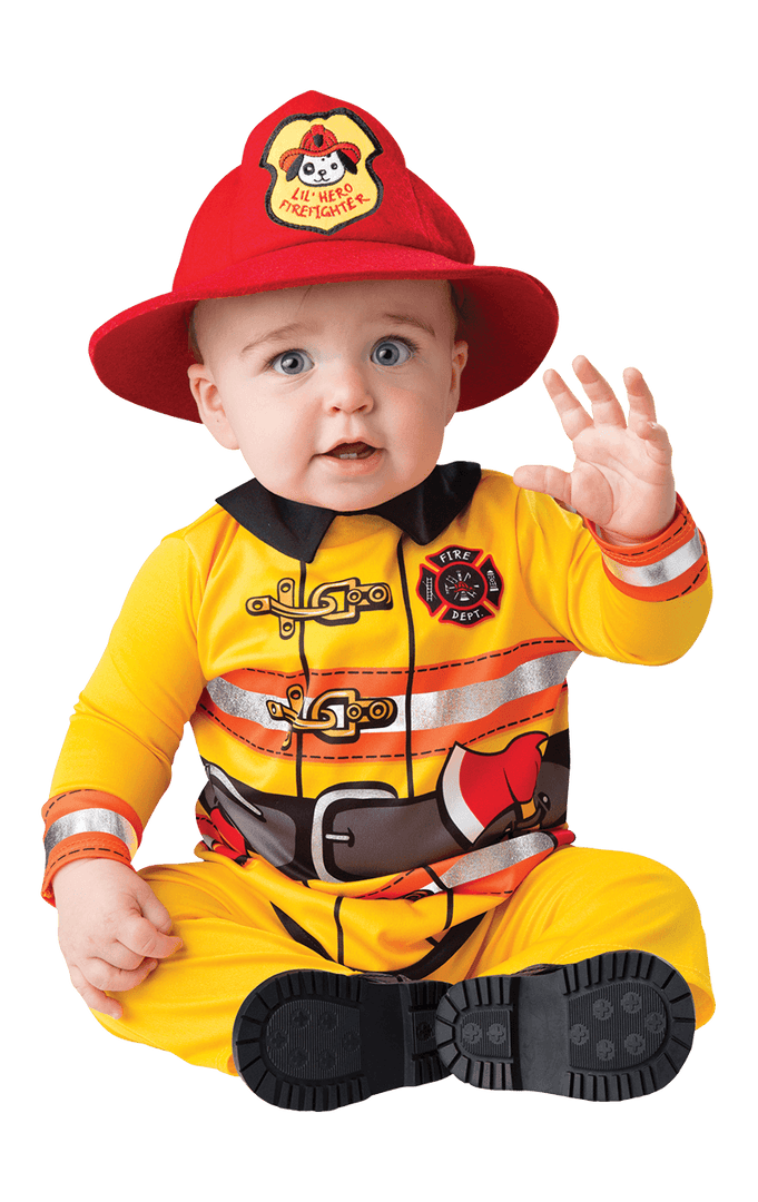 The baby Fireman Costume comes complete with a bright yellow jumpsuit, with detailing of buckles, a belt and his gear. No fireman would be complete without his red hat, which is also included with the outfit.