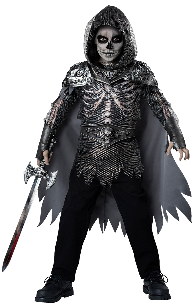Send your little one out trick-or-treating this Halloween in the Kids Ghostly Knight Costume, featuring skeleton bone armour and a ghostly cape with torn hems. Your son will love dressing up in this skeletal and ghostly costume for their next party, and the treats will be rolling into their pumpkin bucket because they look so good! Pair this look up with a sword, skeleton makeup and fake blood to look like he’s just come out of battle!