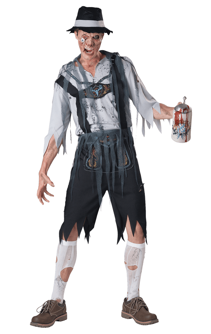 Want to do something really cool this Halloween? How about combining the Bavarian beer swinging enthusiasm of Lederhosen and Oktoberfest with that of being a zombie! Scare away with the Mens Oktoberfeast Zombie Costume, where party goers will realise you won’t just be looking for pretzels and bratwurst sausages to munch on…