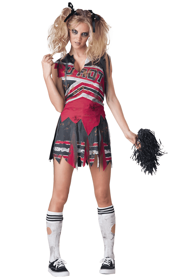 Want to dress up in a sexy sporty way and play a teen psycho this Halloween? Want to be a high school zombie? However, you want to dress up or down, this womens Womens Spiritless Zombie Cheerleader Costume is sure to set you miles apart from the competition. Give me an E-V-I-L! Un-dead zombies have long been a Halloween favourite when it comes to dressing up and combining the theme with a high school cheerleader creates both a sexy and scary costume! You don’t need to cover your face with a facepiece to look cool! Combine your ladies Halloween cheerleader costume with some pom poms (black preferably) and you’ll be ready for the party!