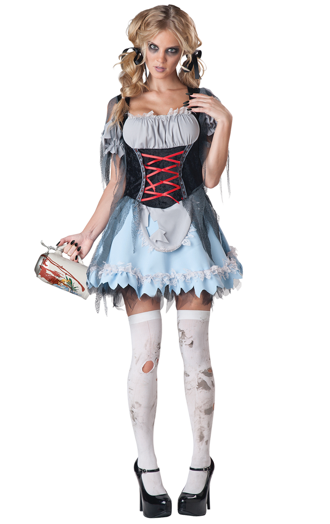 Make humans easy to catch and chew on by getting them drunk first. With this sexy Zombie Beer Maiden outfit you can look good and dead at the same time!