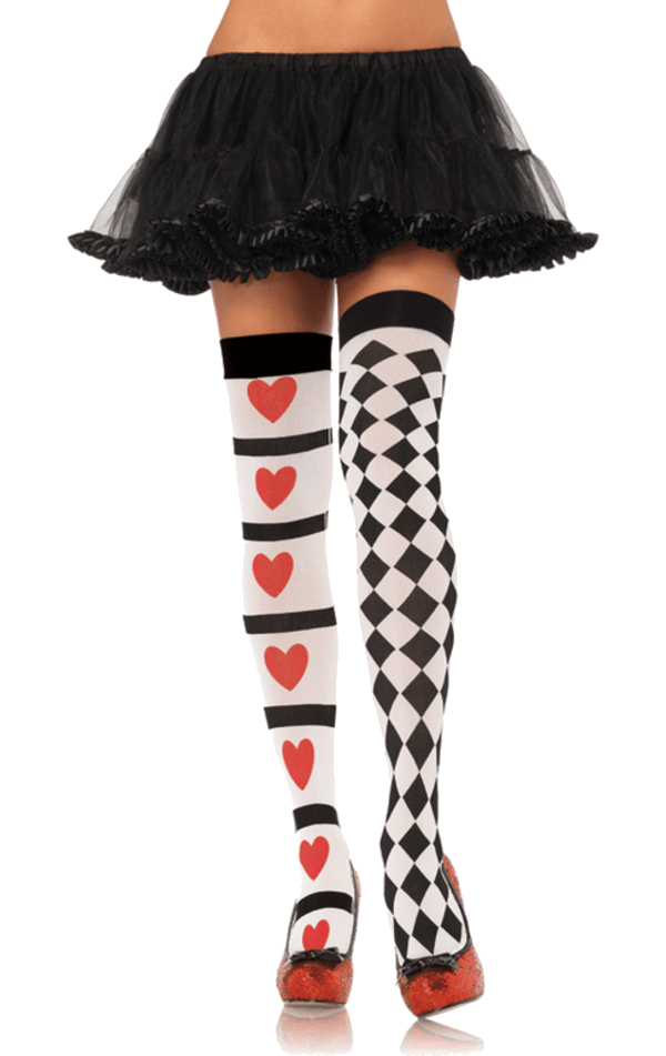 The Harlequin & Heart Stockings Accessory are perfect for adding that extra feature to your jester, psycho clown or Harley Quinn costume!