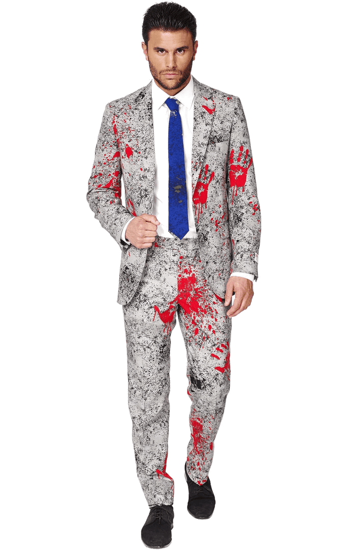 Are you a more understated Halloween dresser? Then our Mens Smart Zombie Opposuit Suit might be just for you. It’s a simple, classy design in a zombiesque print to add a little spook. Product includes grey, bloodied handprint jacket, trousers and tie!