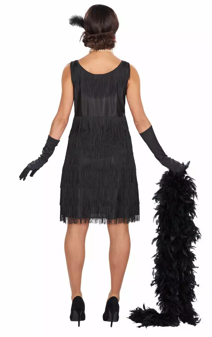 Let’s take it back to a few decades ago, where the women were dressed to the nines in fancy dresses and beautiful makeup, and men wore suits and top hats. The 1920s era was the time for all women to show off their best flapper costumes. The more glitz and glam the better! It’s time to pull out all the stops and to dazzle away at your next 20s themed party, in our Womens 1920s Black Flapper Costume.