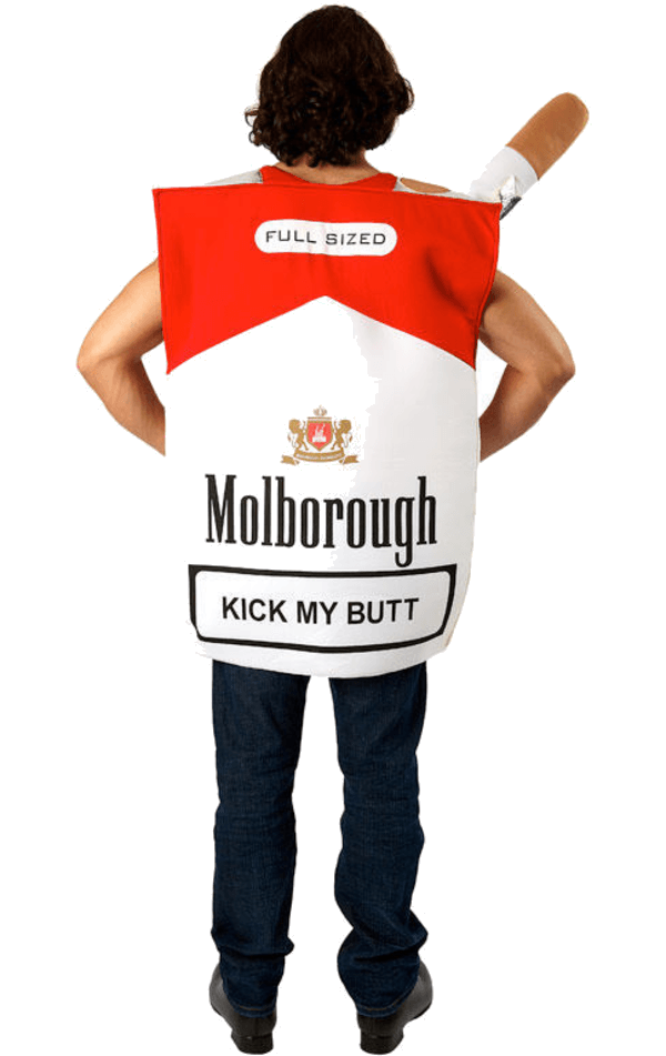 The Adult Cigarette Packet Costume is made up of a white and red ‘Molborough’ cigarettes tunic. It features the message ‘because I love a butt in my mouth’ printed in black on the front, as well as ‘kick my butt’ on the back. This hilarious but utter ridiculous costume is sure to bring entertainment all night long.