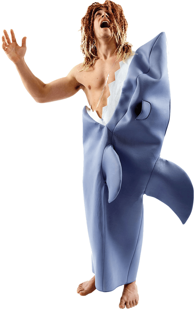 How are you alive! You’ve just been half-eaten by a killer shark! Watch jaws drop in fear in our incredible Adult Deluxe Shark Victim Costume, chuckling as party goers run for safety.