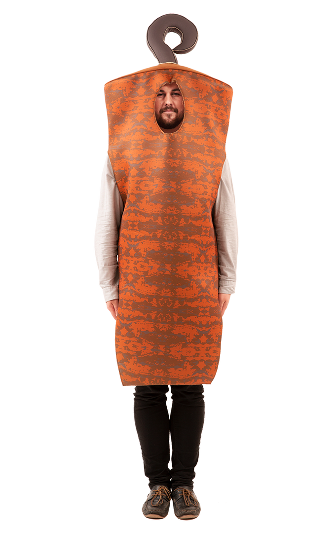 Everyone knows that the nation’s favourite food after a night out is a dirty, filthy Doner Kebab! Now you can dress up as this deliciously juicy pile of meat on your next lads night out in our exclusive Adult Doner Kebab Costume. Complete with the hook it hangs on, you can transform yourself in this kebab costume and get cannibalistic as you scoff your mouth with the delicious meat after the nights over. Now get yourself on the dance floor and show off all those prima-doner moves!