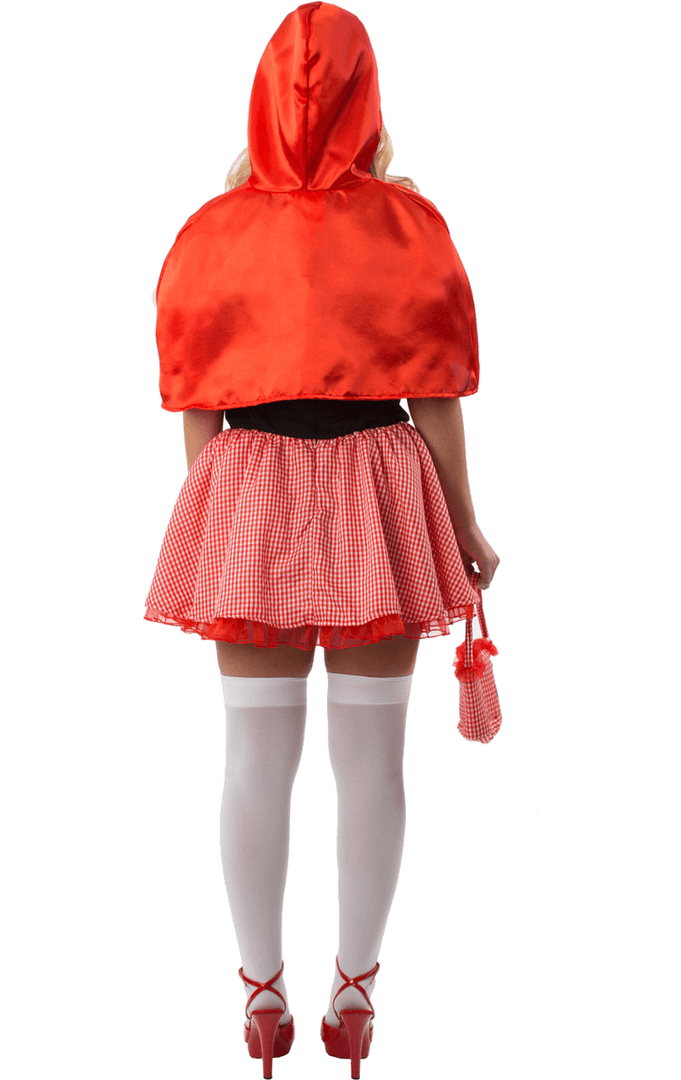 The Adult Little Red Costume includes a red and white chequered mini dress with a puffed-style skirt and a black corset style belt, plus a small white apron with frilled edging. Completing the look is a red satin-style caped hood, and a matching chequered bag. You’ll have everything you need to look like you’ve just hopped out of the storybook.