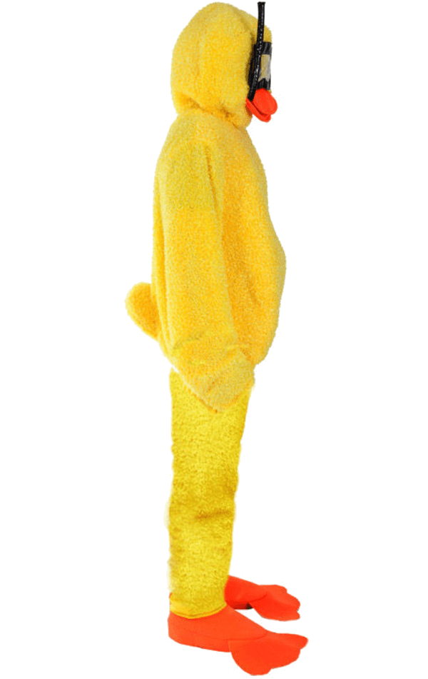 The Adult Rubber Duck Costume is made up of a fluffy yellow long-sleeved top, plus a pair of matching trousers with attached orange webbed feet. Completing the look is a duck headpiece with attached snorkel, so you can splash about without getting water in your eyes.