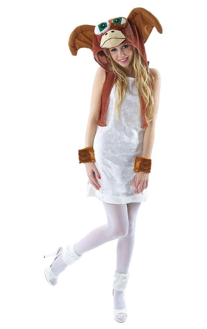 The Adult Gremlins Costume includes a white velvet-style dress with a white furry hem, as well as matching furry white leg cuffs and light brown wrist cuffs. Completing the look is an adorable, hooded brown waistcoat, which features large ears on top, plus the sweet face of the gremlin. Your adorable alien appearance will be sure to get you out of trouble when you’re caught getting up to mischief!