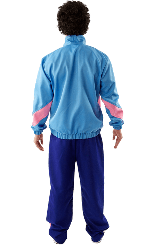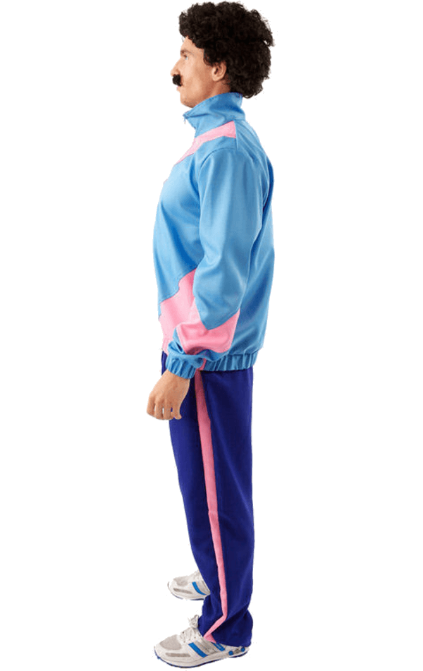 Our Adult 1980’s Scouser Costume comes complete with a long sleeve blue and pink jacket with a high neck. It features unique, retro panel designs on the front that make it ‘so 80’s’. Also included are a pair of dark blue trousers with a pink stripe on the sides. No 80’s Scouser would be a true Scouser without a black curly wig and moustache, so luckily for you, these are also included.