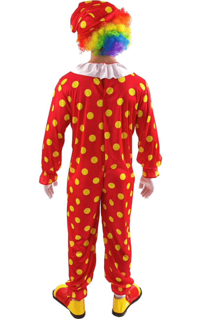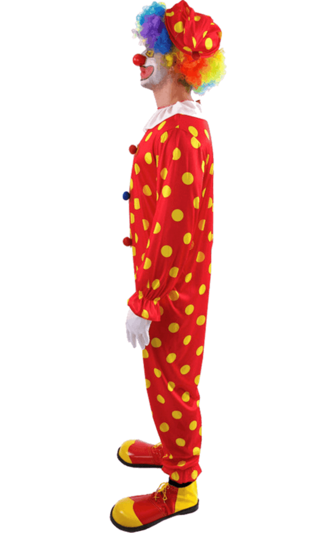 The Adult Bobbles The Clown Outfit is made up of a super colourful red and yellow polka dot jumpsuit with a white frilly collar and pom-pom style buttons down the centre. It also features a matching hat in the same vibrant pattern. Just add a brightly coloured wig and some crazy clown face paint and you’ll be ready to bring the jokes and goofiness to the party.