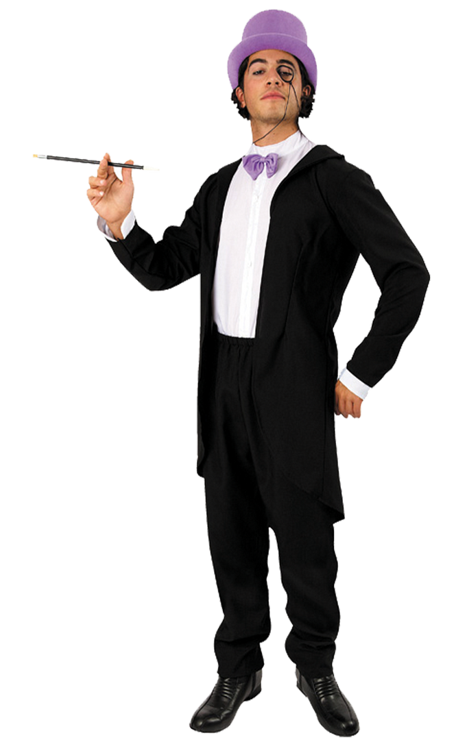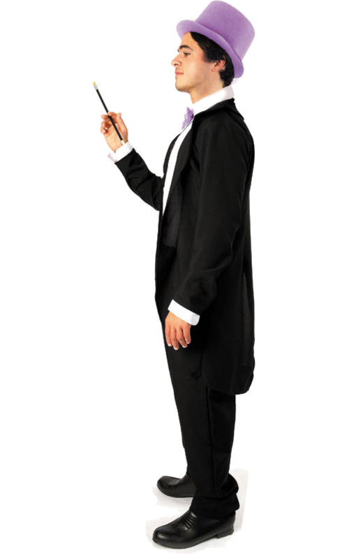 Our costume consists of a long black blazer and an attached white shirt with a lilac bow tie. To complete The Penguin Batman Costume, it also comes with a lilac top hat. All that’s missing is your monocle, and you’re all set to solve that mystery!