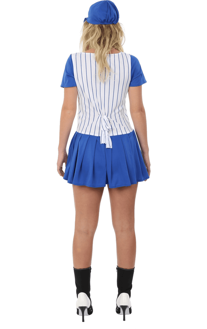 Our Ladies Baseball Girl Costume is a fun sporty look, perfect for sport themed fancy dress parties. Perhaps there’s a group of you and you want to make a statement when you’re out on the town. Whatever the occasion, this is the look for you! Perfect for sports themed parties, USA themed events and even hen dos! Includes blue and white dress and blue baseball cap, complete the look with a baseball bat!