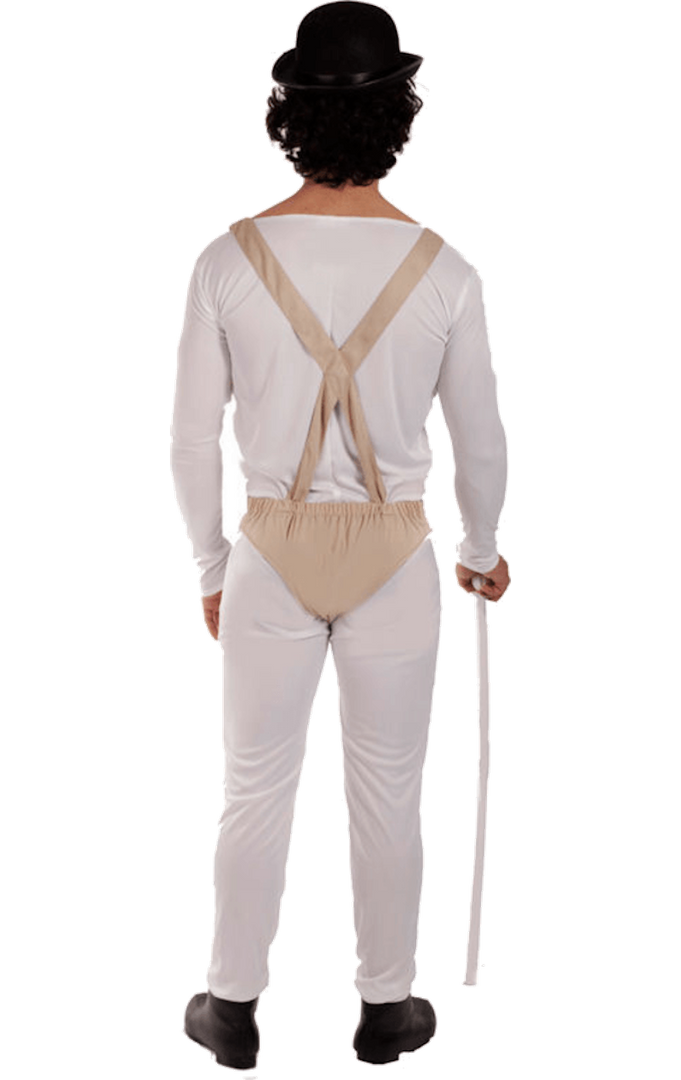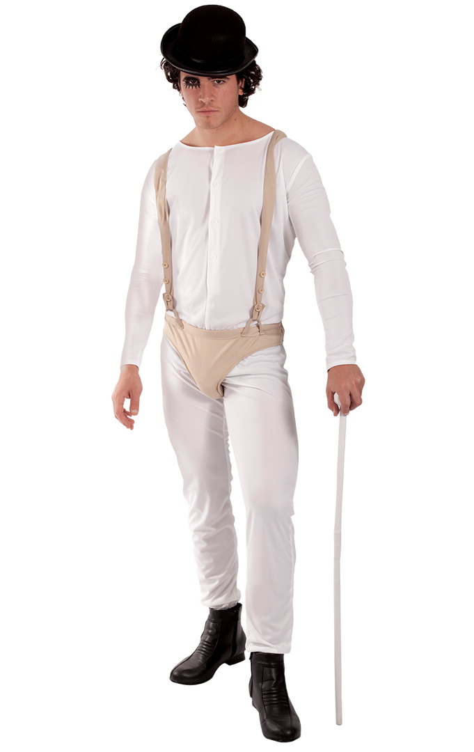 The Men’s Clockwork Orange Movie Costume is made up of a white jumpsuit and nude briefs with padding, attached to matching braces. Completing the look is a white cane, which will help you become the horrifying, instantly recognisable character we all recognise.