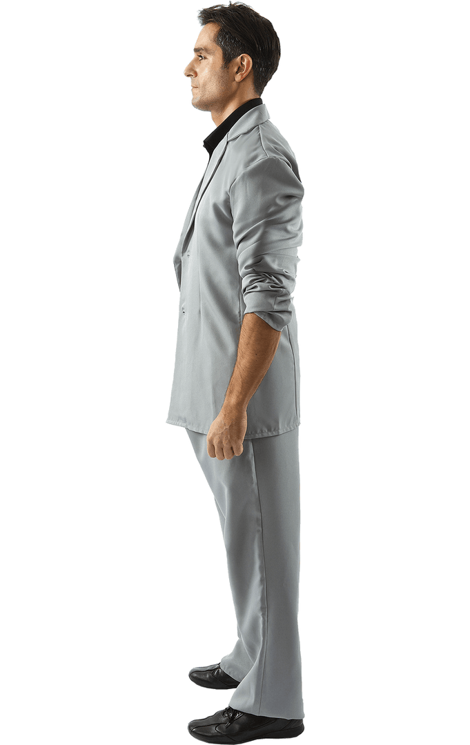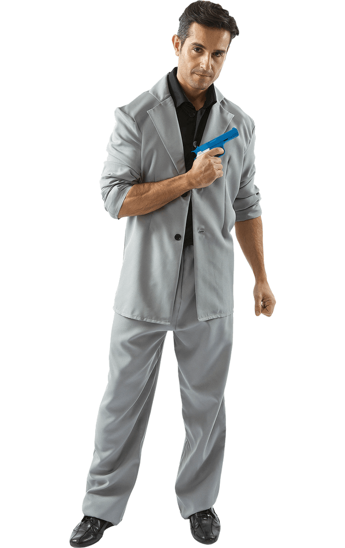 The Mens Miami Vice Rico Tubbs Costume is made up of the iconic grey suit jacket and matching trousers, as well as a black shirt. You’ll have everything you need to re-create the classic 80’s detective look. Simply pop on some aviator shades for that added accessory value.