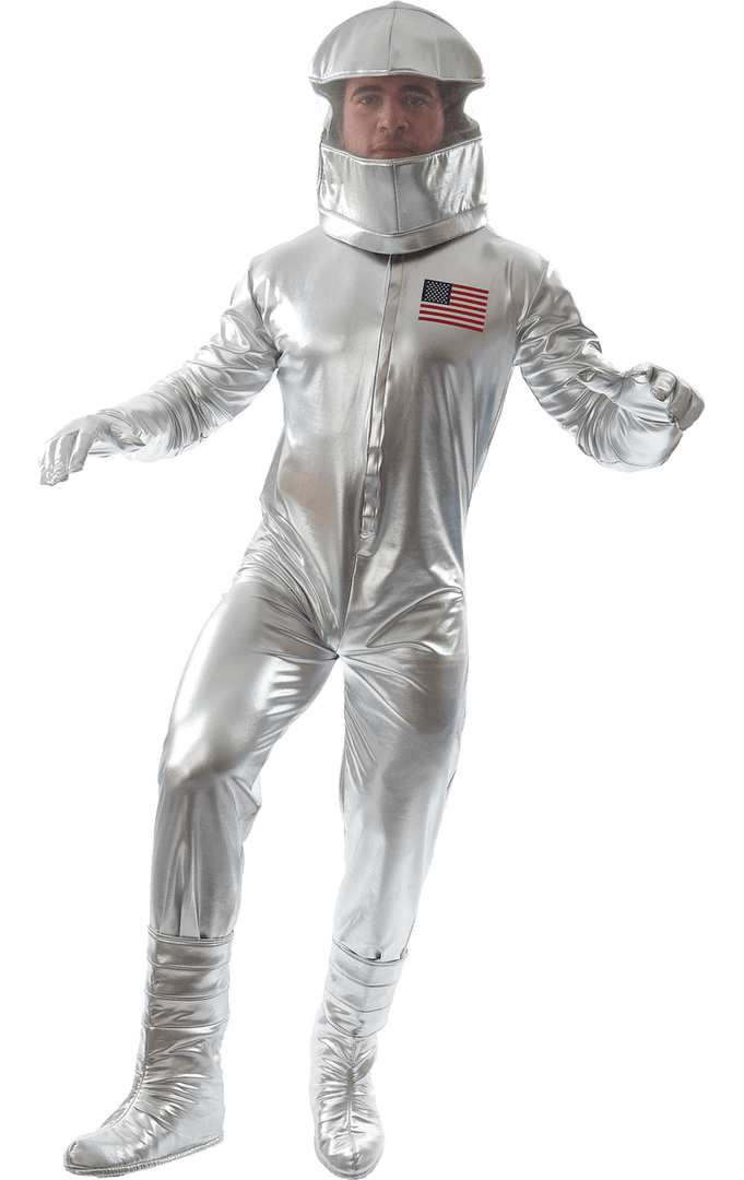 The Mens Traditional Silver Astronaut Costume is made up of a silver metallic that has an American Flag Printed on the left of the chest. It also features matching boot covers and gloves. Completing your ‘out of this world’ look is an over-head helmet with a clear visor, giving you everything you need to jump in your space shuttle and head off to another galaxy.