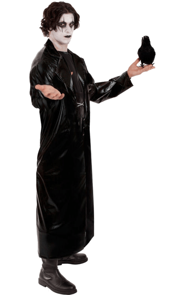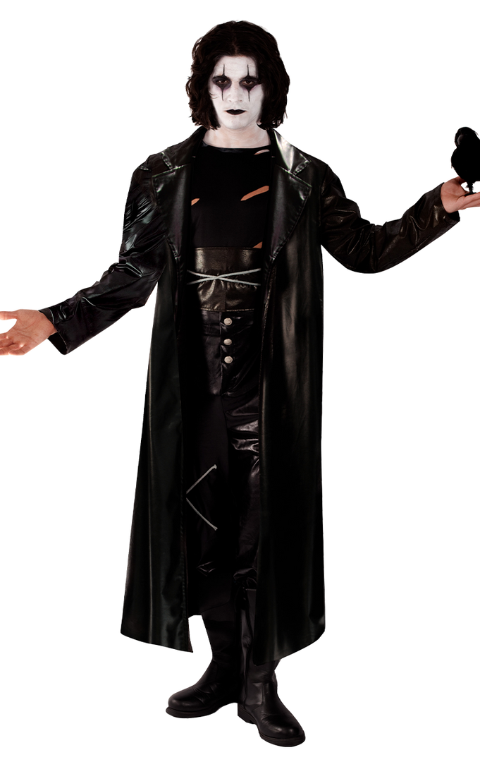 The Adult The Crow Movie Costume is made up of a leather-look black jacket with matching leather-look trousers. It also includes a black top and belt. All you need extra is some white and black face paint, creating the unique look of this devious movie character.