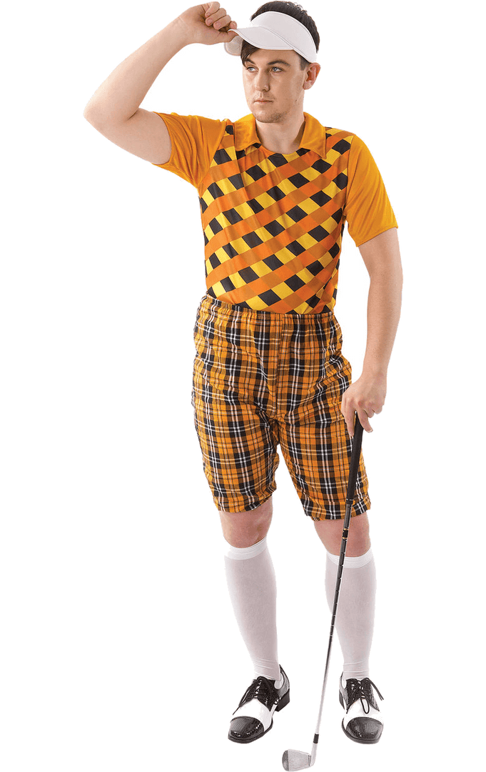 Grab your club and make sure your cap is tightly fastened! Our Mens Pub Golf Costume – Orange is sure to prove to everyone that you’re a true professional!