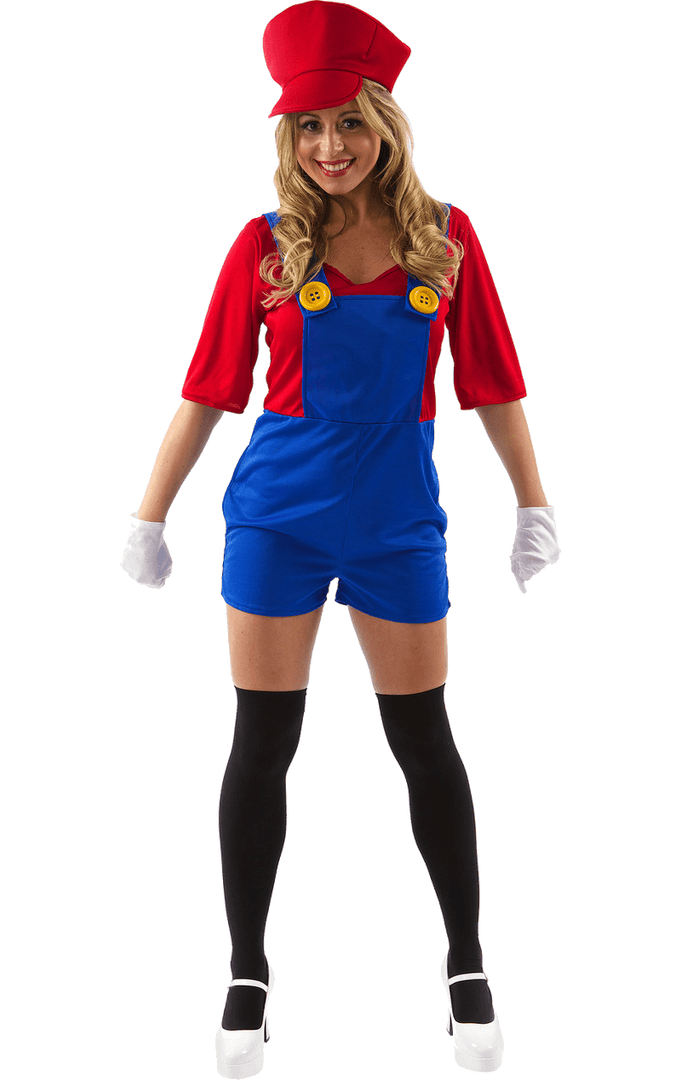 The Women’s Super Mario Costume is made up of an all-in-one playsuit-style blue jumpsuit, with an attached red T-shirt. A red hat completes the outfit and will have you looking like the real Super Mario.