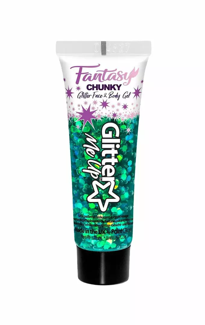 Rave it up at your next festival and sparkle in the crowd once you’ve applied the Green Iridescent Chunky Glitter Gel. This premixed body and face glitter has different sized flecks, applies with no fuss straight from the tube and is the perfect size for on the go! No adhesives or glues are needed with this one; it sticks all night long and can be easily removed with a makeup wipe or water. So start applying this to your face, hairline and body and prepare to sparkle! Why not try it for a glitter skull or witchy look this Halloween? Cruelty-Free & Vegan.