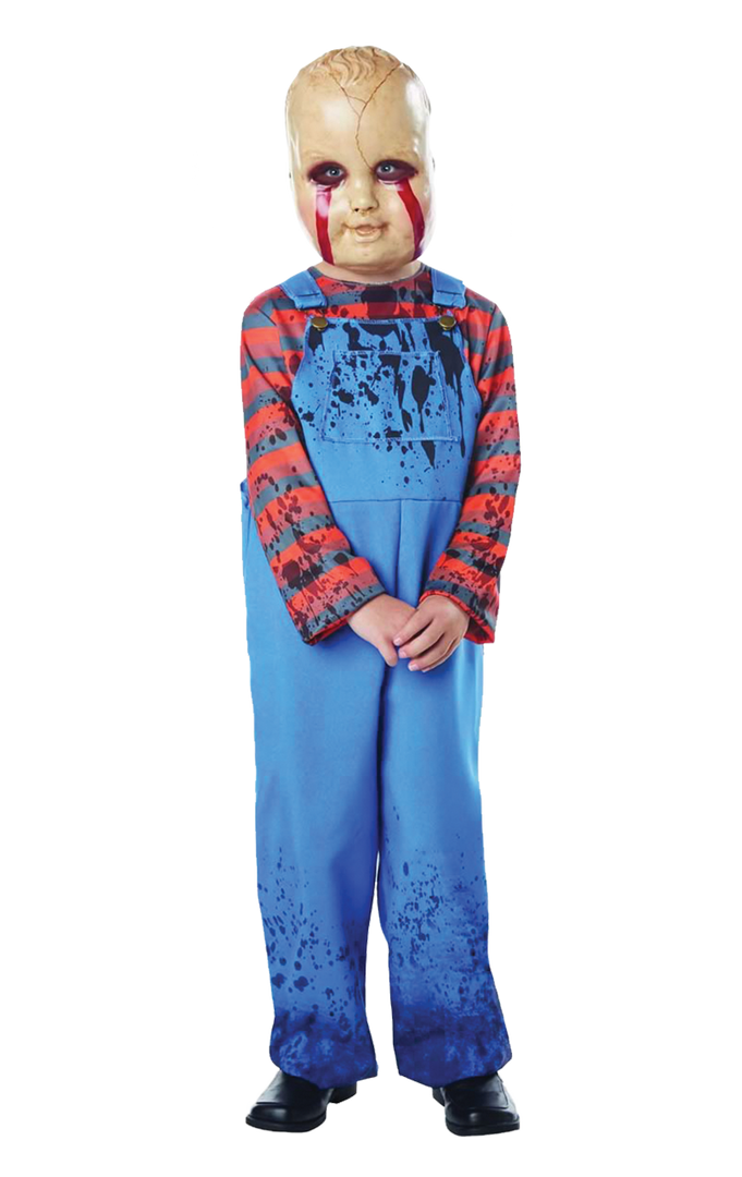 Your little one will be the scariest one at any Halloween party and the most horrifying trick or treater around in the Kids Killer Doll Costume. Whether they’d like to be Chucky, or just a terrifying broken doll, it’ll definitely cause a scream or two! If the blood splattered top and dungarees weren’t enough, the broken doll facepiece with blood streaming from the eyes definitely makes it a terror inducing choice this Halloween!