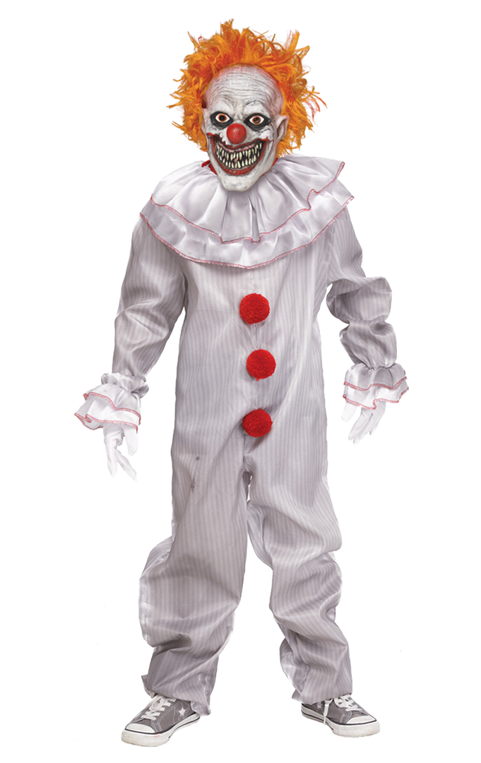 Know a little one that loves horror? Let them become their favourite killer clown this Halloween with the Kids It Pennywise Clown Costume. In this kids pennywise costume, your child will be getting all the best costumes when trick-or-treating for having the best creepy clown costume! This clown jumpsuit complete with neck ruffles and pom-poms also has a sinister facepiece with bright orange hair and a demonic face. You’ll usually find this one lurking around the sewers, but at Halloween, he can’t resist the fun!