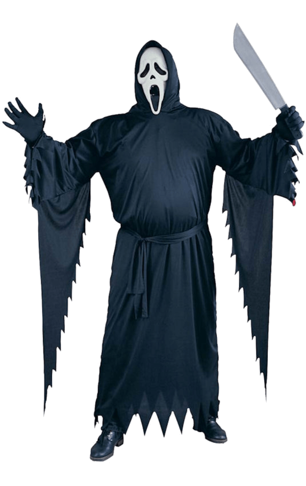 Stalk your friends and make them scream this Halloween in our Plus Size Scream Stalker Costume. A comfortable black robe with a terrifying scream character facepiece. Chop everyone into little pieces and throw them to the dogs! Any fan of the movie will love this detailed character costume.