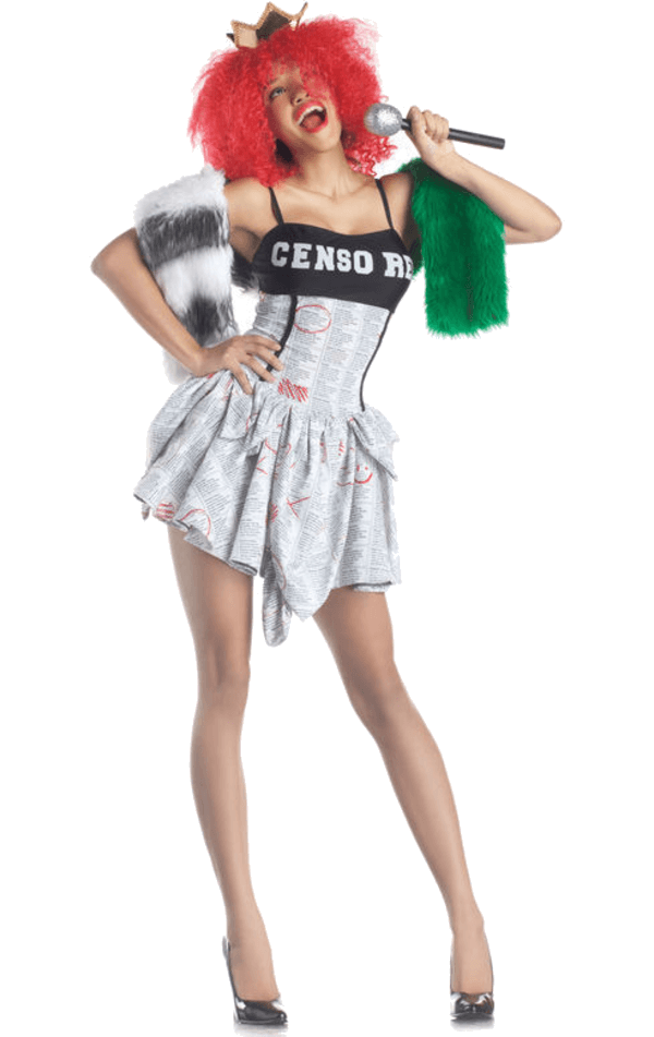 You’ll shine like a diamond in our Rihanna Pop Star Costume! This wild outfit is inspired by the singers’ dress in her infamous ‘S&M’ video, featuring tabloid newspapers and a faux fur boa she is rarely seen without!