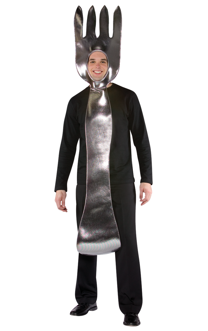 Our Adult Dinner Fork Costume slips easily over your head and is worn over your own black clothing.