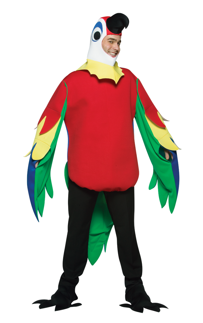 This outfit will certainly cause a flutter at any party! Give people something to squawk about in this colourful Adult Parrot Costume. Befriend a pirate or imitate other people, be whatever parrot you want to beak!