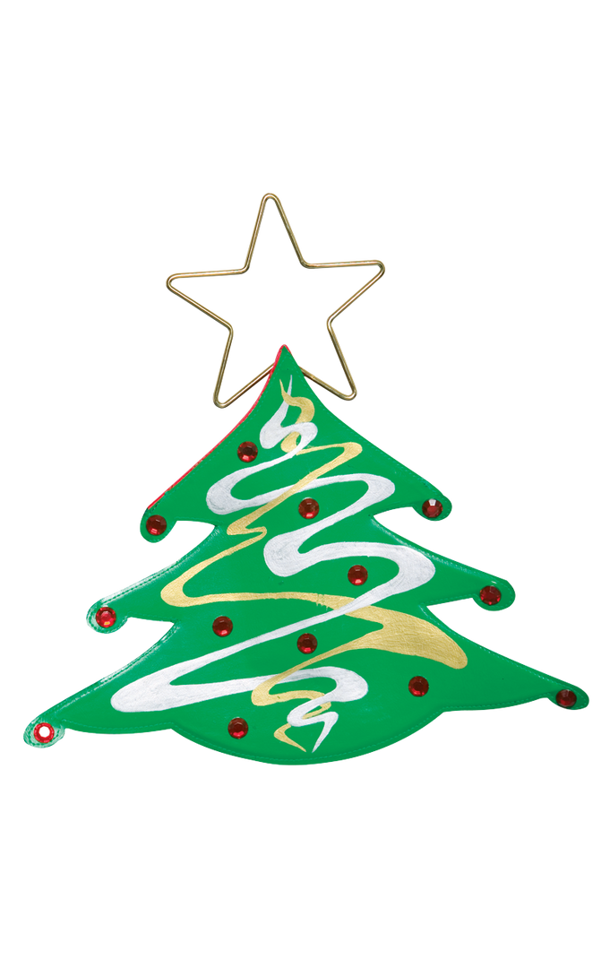The Christmas Tree Handbag is a gorgeous green bag in the shape of a tree. It features shimmering gold and silver detailing, as well as gold shimmering studs for baubles and a star for the handle.